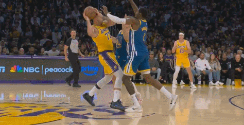 斯玛特与库里抢位置时,直接锁住了库里的肩膀,在缠斗中,库里直接被放倒了