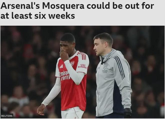 BBC记者SM消息,阿森纳担心莫斯克拉将至少因伤缺阵6周。