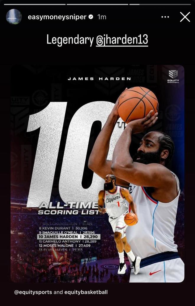 里程碑!哈登超越甜瓜 升至NBA历史得分榜第十名